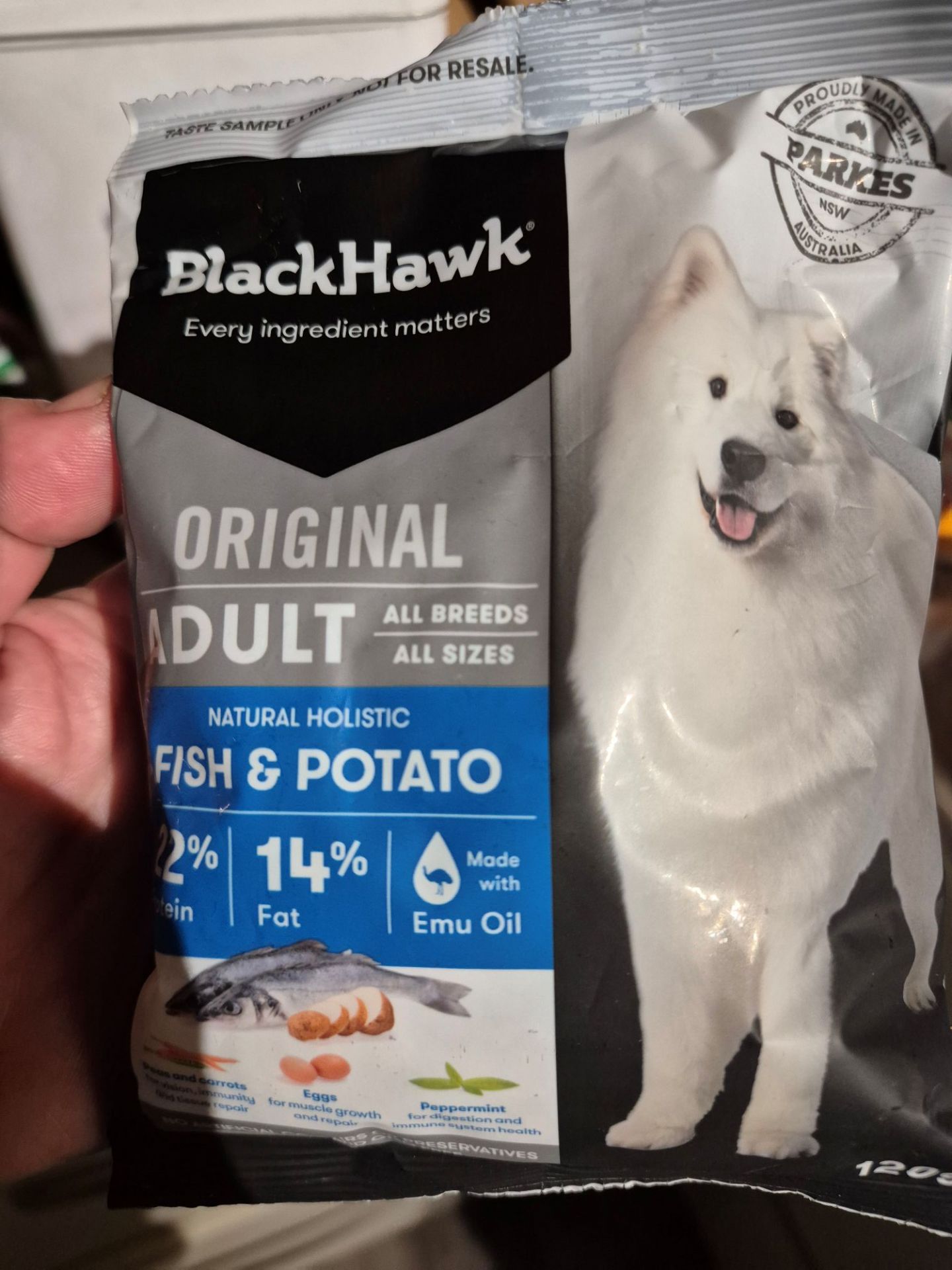 Black Hawk Fish and Potato is made with select Australian fish, packed with omega-3 fatty acids and protein for strong, lean muscles, healthy skin and coat as well as overall health and vitality. Formulated specifically with ingredients that matter, like potato providing a non-grain carbohydrate that is easily digested by sensitive digestive systems, carrots as a rich source of beta-carotene and peas as an extra source of digestible plant-based protein and fibre which contributes to good intestinal health. This recipe also contains emu oil which may support joints, providing complete and balanced nutrition for your pet.