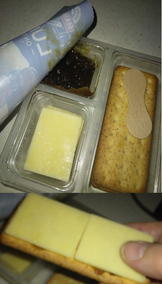 Loved this product. Great for a quick ‘grab and go’ option to take to work for lunch. Really enjoyed the caramelised onion relish; went really well with the cheese and crackers. Comes with four crackers and 8 slices of cheese (two slices are a perfect fit for one cracker as the crackers are quite long; photo added to show this – sorry it’s a bit blurry).