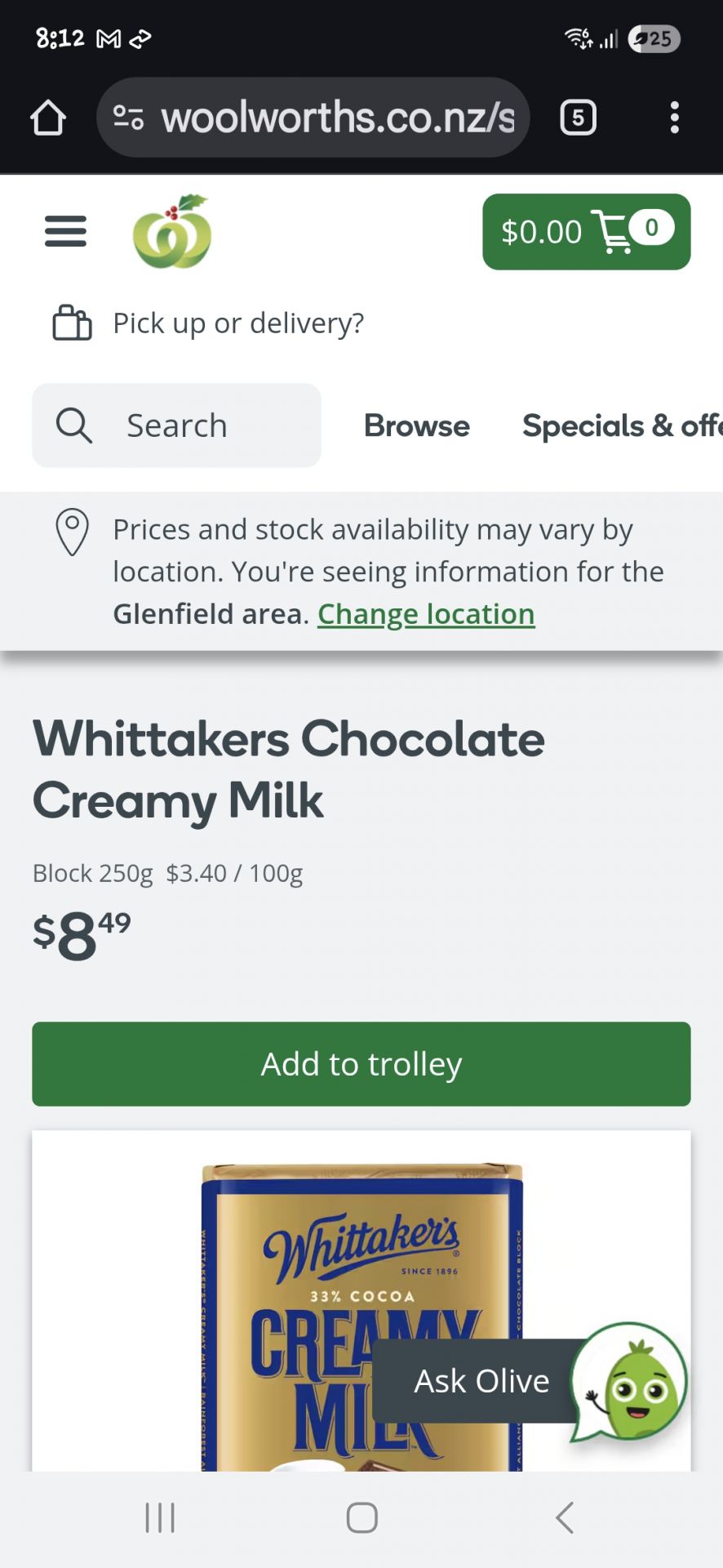 Really delicious chocolate but sometimes a line needs to be draw. I am drawing that line today after seeing this chocolate at $8.49!!! Whittakers have lost the plot. Really disappointed I love chocolate but I can’t justify spending $8.49 Whittakers.